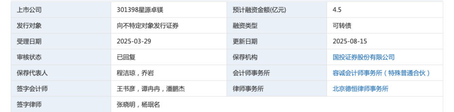 星源卓镁保荐机构为国投证券股份有限公司保荐代表人程洁琼,乔岩、会计师事务所容诚会计师事务所(特殊普通合伙)签字会计师王书彦,谭冉冉,潘鹏杰。