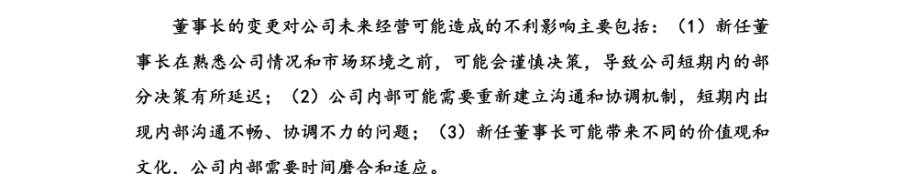 这是一个极其重大的个人风险,一个随时可能被列为“失信被执行人”的董事长,不仅其任职资格存疑,其个人信誉的崩塌更可能对公司的声誉、融资能力、商业合作带来难以估量的负面冲击。然而,在问询回复中,对于董事长变更可能造成的不利影响,公司的描述仅限于“决策有所延迟”、“内部沟通不畅”等常规性、程序性的层面 ,远未充分揭示其个人信用风险对公司的实质性威胁。
