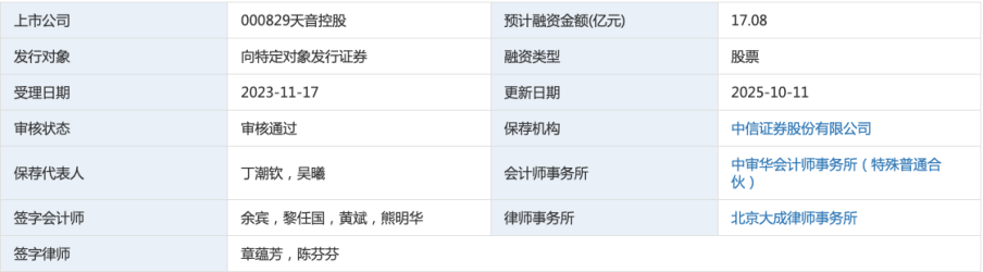 天音控股保荐机构为中信证券股份有限公司(以下简称“中信证券”)保荐代表人丁潮钦,吴曦、会计师事务所中审华会计师事务所(特殊普通合伙) 签字会计师余宾,黎任国,黄斌,熊明华。