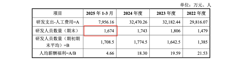 信息披露的生命在于真实。然而,鼎捷数智在论证本次募投项目合理性时,却展现了对数据或“选择性使用”。在《二轮回复》中,公司强调“研发人员数量由2022年末的1,479人增加至2025年3月末的1,674人”,兴业证券王贤与李海东或试图营造出研发团队持续扩张、亟需新研发基地的繁荣景象。