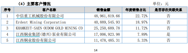 关键差异在于重要客户销售金额方面,耐普矿机在2016年年报中披露,当年第五大单户客户为“江西铜业股份有限公司”,涉及销售金额为1147.85万元。