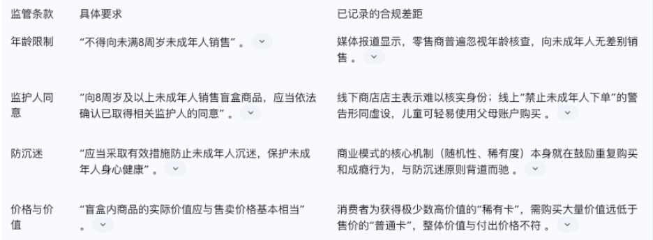 根据市场监管总局的指引,合规责任主体是“盲盒经营者”,即卡游自身。然而,这些第三方零售商几乎没有动力去执行可能减少销售额的规定,也缺乏进行严格年龄验证的基础设施。因此,卡游在法律上需要为一个它在实践中难以控制的分销网络的行为负责。对于监管机构而言,这种业务结构或是一个“不足”,可能被视为一种系统性的、旨在实现“合理推诿”的设计,即公司从零售层面的中获利,同时在企业层面声称合规。