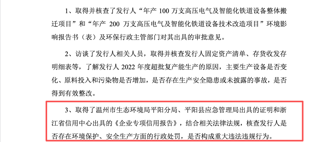 更为关键的是其获取“免死金牌”的操作:2025年2月27日(正值北交所IPO冲刺的冲刺期),温州市生态环境局平阳分局为益坤电气开具了一纸《证明》,确认其2022年“不属于超过环评审批规模的情形,不构成项目规模发生重大变动情况,不属于重大违法情形,不会因此受到该局行政处罚”。同时,平阳县应急管理局也出具了未受到行政处罚的证明。