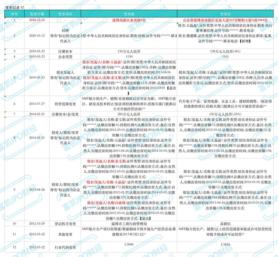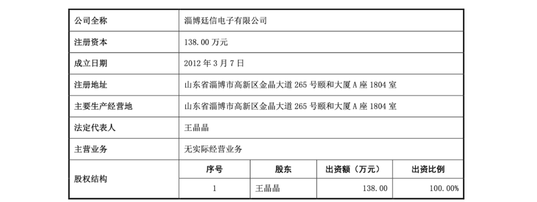 除了上述亚华电子董事长耿玉泉任职履历存疑外,东吴证券保荐代表人曹飞,庞家兴撰写亚华电子招股书或存在信息披露不完整情况看。亚华电子招股书(上会稿)显示,淄博廷信电子有限公司(以下简称“淄博廷信”)法定代表人为王晶晶持股100%,而王晶晶为亚华电子实际控制人耿斌的妻子。企查查搜索淄博廷信历史主要人员显示,姜文朋职务为经理,白政锋为监事。两人卸任时间为2020年10月12日。该公司目前无实际经营业务。