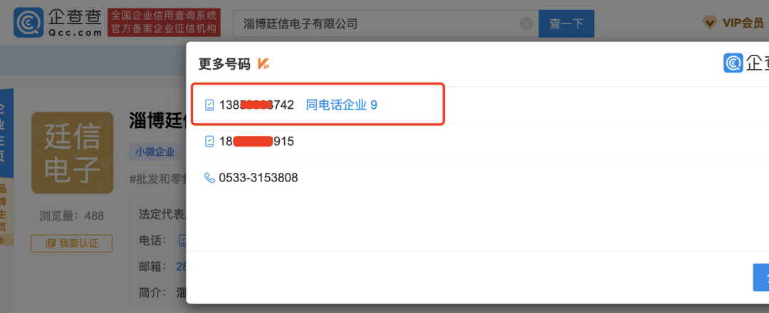 淄博廷信2019年年报披露的企业联系电话同时关联了亚华电子实控人耿斌5家公司。