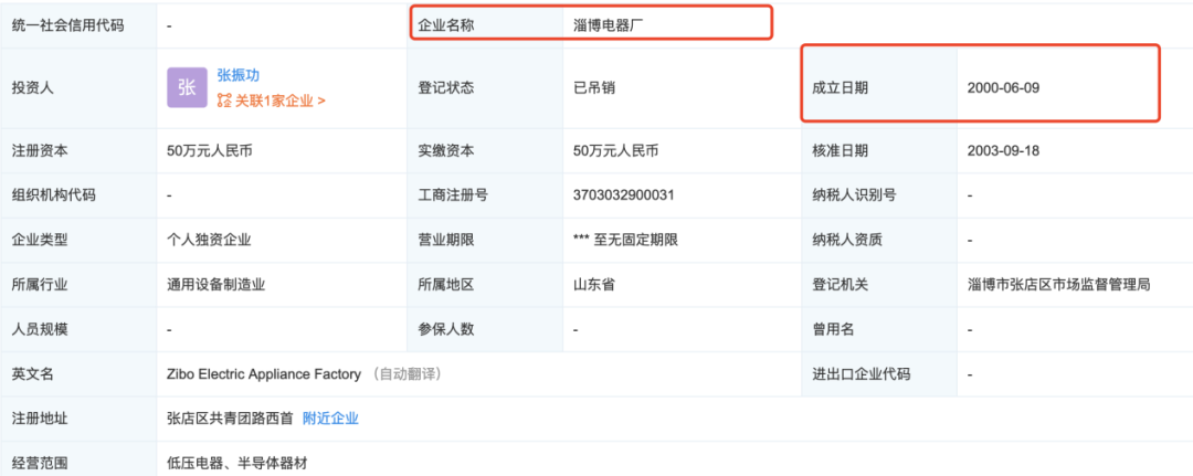 企查查搜索结果显示,淄博电器厂成立于2000年6月9日,而东吴证券保荐代表人曹飞,庞家兴撰写亚华电子招股书却称“1998 年 12 月创办亚华有限”。即亚华电子董事长耿玉泉在1998年前就任职了尚未成立的淄博电器厂。