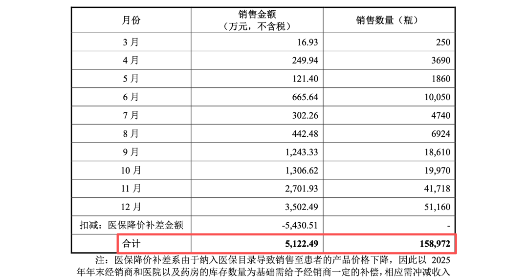 然而笔者,通过财务勾稽揭示了隐藏在这些解释背后的逻辑答案。据披露,在非医保阶段,斯泰度塔单抗的终端定价为798元/瓶。公司2025年实际销售15.90万瓶,若不考虑后续的退让或补偿,理论上应产生的主营业务收入约为11,228万元(假设798元为含税价,增值税率13%,则不含税出厂价约为706.19元,15.9万瓶 * 706.19元 ≈ 11,228万元)。但实际上,泰诺麦博2025年经审计确认的主营业务收入仅为5,122.49万元。