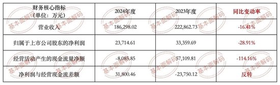 根据公开披露的财务决算数据,四方科技2024年度实现营业收入18.63亿元,较上年同期下降16.41%;实现归属于上市公司股东的净利润2.37亿元,同比下降28.91%;实现归属于上市公司股东的扣除非经常性损益的净利润2.19亿元,同比下降28.52%。在营业收入与净利润双双下滑的背景下,公司账面依然维持了超过2亿元的高额净利润。然而,与这一“账面富贵”形成灾难性对比的是,其2024年度经营活动产生的现金流量净额呈现断崖式下跌,录得-8,085.85万元,同比暴跌114.16%。