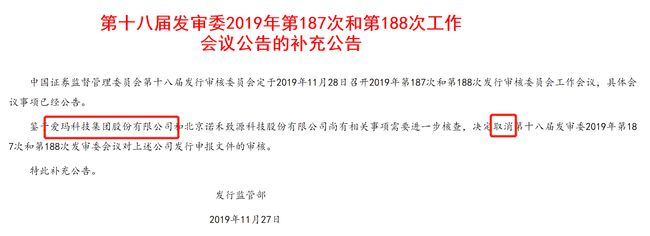 2019年11月28日原本安排上会,没想到上会审核前一晚,再生变故。最终因“尚有相关事项需要进一步核查”,取消了审核。